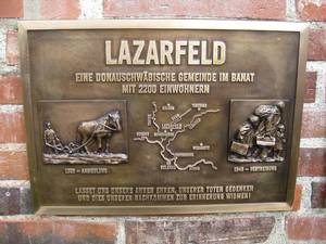 Am 17. Mai 2014 ging für die Lazarfelder Landsleute, allen voran Sepp Lang aus München, ein lange gehegter Herzenswunsch in Erfüllung. Am Donauschwabenufer in Ulm wurde an diesem Tag pünktlich um 10.30 Uhr unter dem Beisein von 30 Lazarfeldern zu Ehren unserer Ahnen, die Lazarfelder Gedenktafel enthüllt. Selbst Frau Katharina Vieritz geb. Siller (Haus Nr. 285 bei der Bahn) reiste im hohen Alter von 91 Jahren zusammen mit Ihrer Tochter extra aus dem Siebengebirge an, um bei diesem Ereignis dabei zu sein.