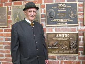 Wir sind heute hier zusammengekommen um an einem für unsere Heimatgemeinde Lazarfeld denkwürdigen Ereignis teilzunehmen. Wir wollen an dieser ehrwürdigen Stelle, wo vor 250 Jahren unsere Ahnen voller Hoffnung donauabwärts in eine unsichere Zukunft zogen, eine Gedenktafel enthüllen. Diese Tafel soll daran erinnern, dass weit unten auf dem Balkan, im Banat eine Gemeinde existierte in der 150 Jahre lang Donauschwaben lebten. Mit Stolz und voller Ehrfurcht wollen wir den Leistungen unsere Ahnen gedenken aber auch unserem Schicksal danken, dass uns Überlebenden und unseren Kindern ein Leben in einer sicheren Zukunft beschieden wurde.
